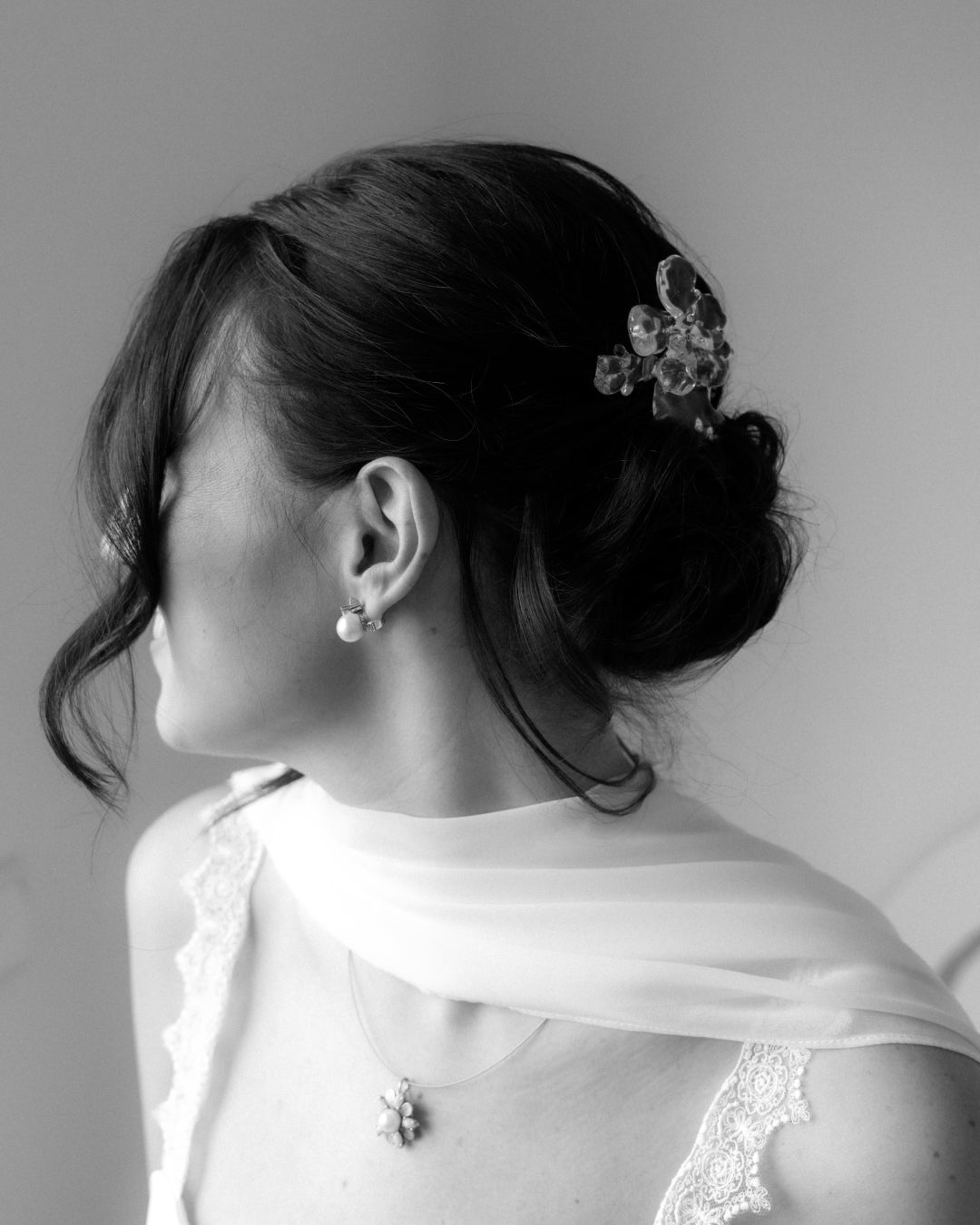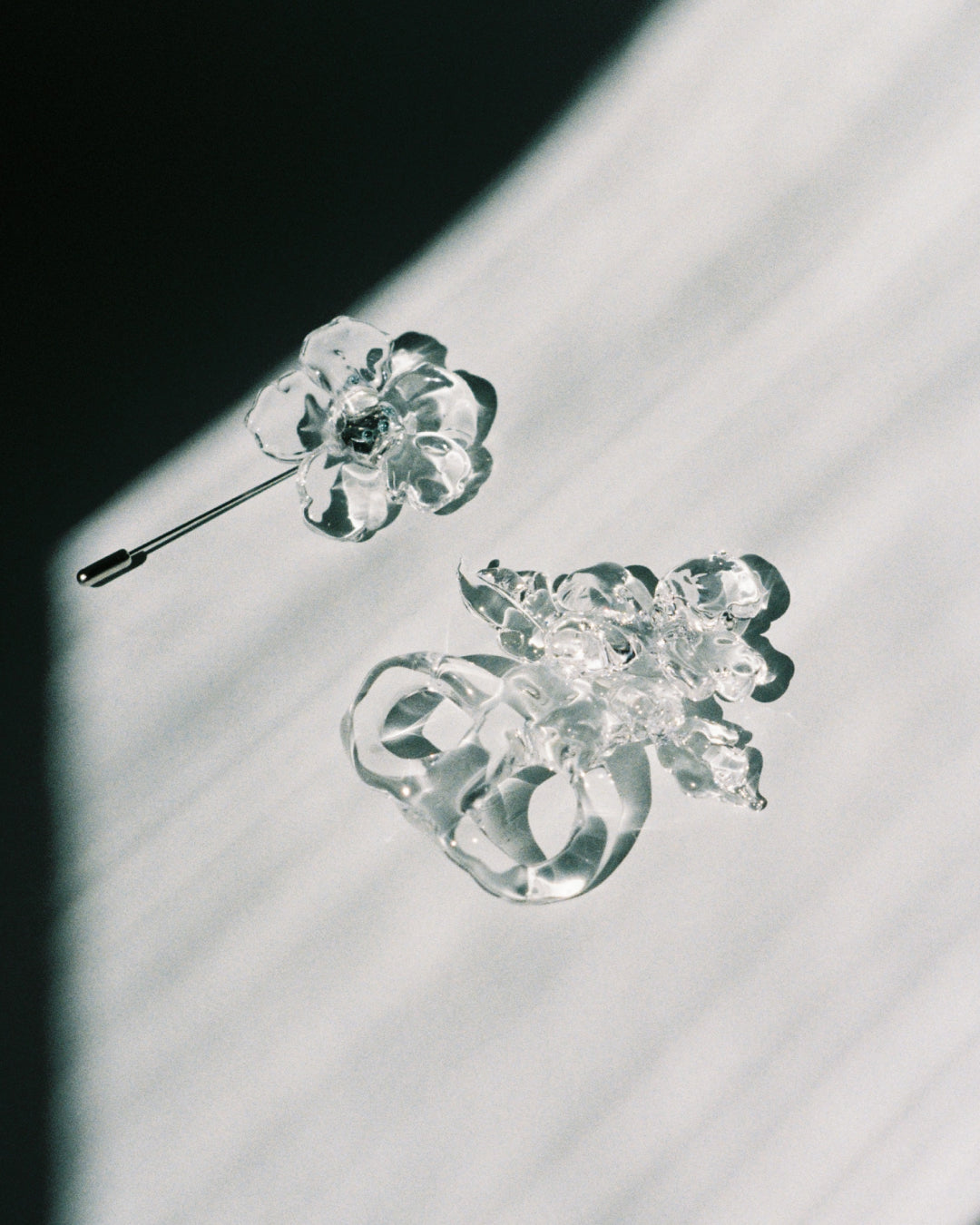 For Carme and Oriol’s wedding, we crafted a glass headpiece for the bride and a unique brooch for the groom. These pieces became treasured symbols of their day, blending artistry with personal meaning.