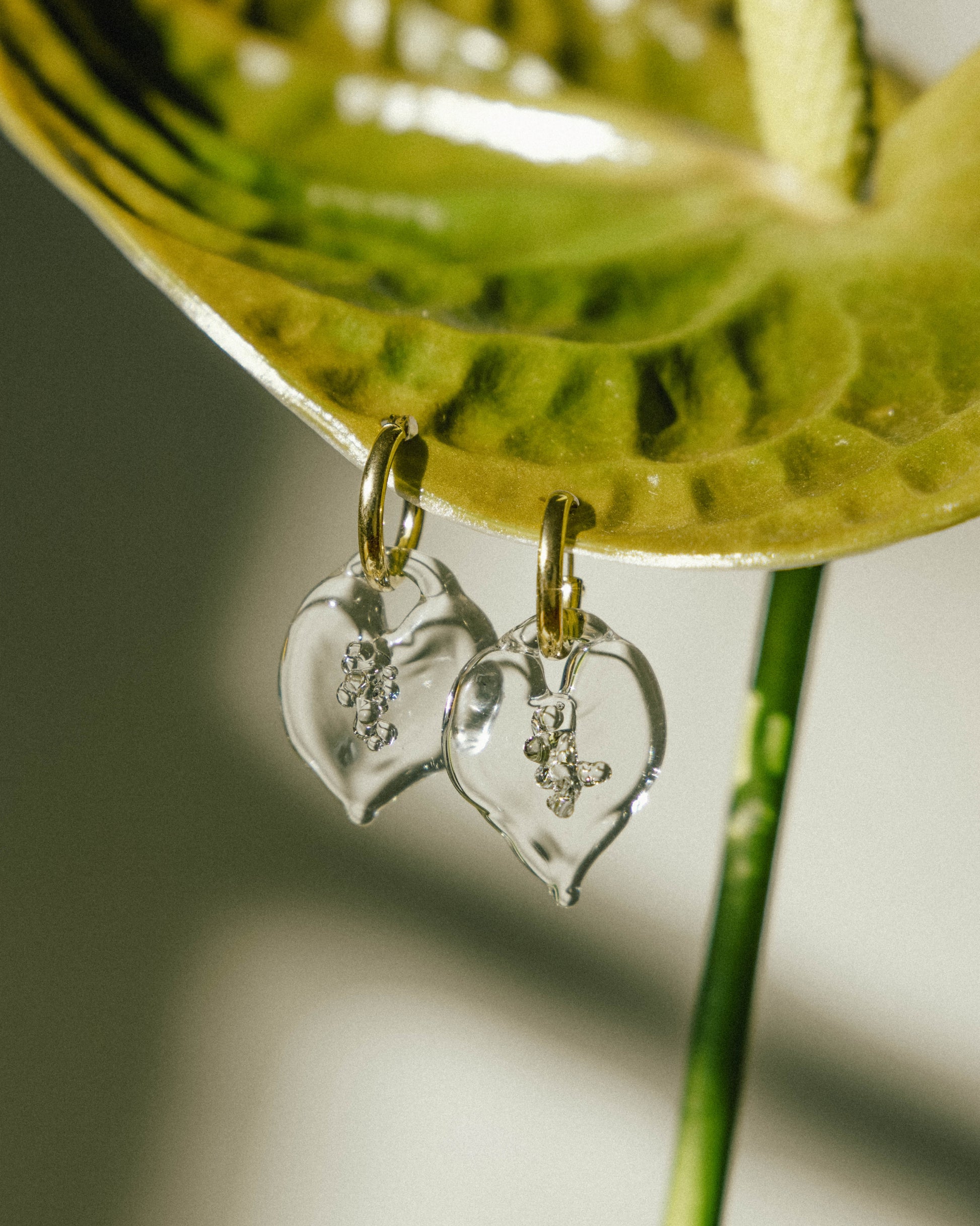 Transparent borosilicate glass earrings with silver/ gold-plated silver hoop